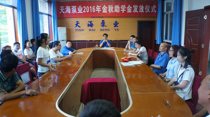 2016年8月31日,山西天海泵業(yè)有限公司在二樓會議室舉行了2016年金秋助學(xué)金發(fā)放儀式。今年員工子女高考達二本及二本以上共31人,創(chuàng)我公司歷史新高。根據(jù)《教育救助基金設(shè)立與扶貧助學(xué)體制方案》參加全國統(tǒng)一高考的本公司員工子女,被國家二本以上院校錄取的大學(xué)生給予一次性獎勵:被一本院校錄取的,每人獎勵3000元;被二本B以上院校錄取的,每人獎勵2000元。截止2016年,已資助員工子女144人,金額達31.2萬元。