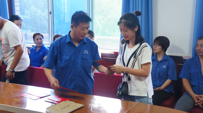 緊接著,劉董事長宣讀了獲獎名單,由工會主席張克躍、黨總支副書記周建斌向各位受助學(xué)生頒發(fā)了助學(xué)金。最后全體參加儀式人員合影留念,頒獎儀式圓滿結(jié)束。
