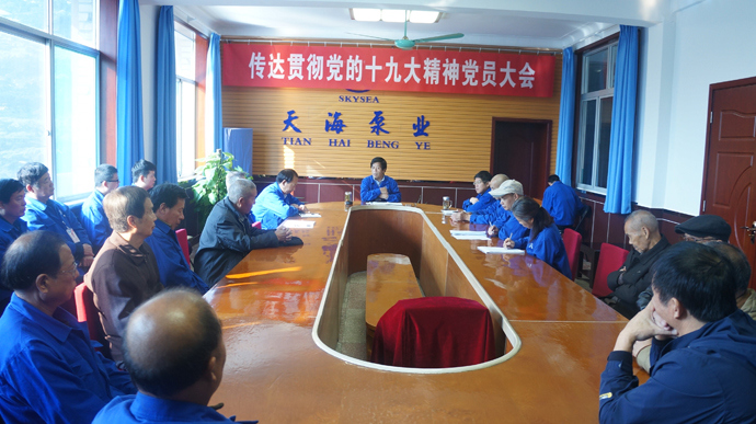 會(huì)上,首先由周建斌副書記宣讀了“黨的十九大關(guān)于《中國(guó)共產(chǎn)黨章程(修正案)》的決議”的內(nèi)容。接著劉院昌書記指出,天海泵業(yè)和全體黨員要堅(jiān)決擁護(hù)黨的十九大作出的各項(xiàng)決策部署,堅(jiān)決維護(hù)以習(xí)近平同志為核心的黨中央權(quán)威和集中統(tǒng)一領(lǐng)導(dǎo),要把認(rèn)真學(xué)習(xí)、深刻領(lǐng)會(huì)、全面貫徹十九大精神作為當(dāng)前和今后一個(gè)時(shí)期的首要政治任務(wù),迅速把思想和行動(dòng)統(tǒng)一到黨的十九大精神上來(lái),緊密團(tuán)結(jié)在以習(xí)近平同志為核心的黨中央周圍,高舉中國(guó)特色社會(huì)主義偉大旗幟,認(rèn)真學(xué)習(xí)貫徹習(xí)近平新時(shí)代中國(guó)特色社會(huì)主義思想,解放思想,改革創(chuàng)新,銳意進(jìn)取,埋頭苦干,以永不懈怠的精神狀態(tài),奮力開(kāi)創(chuàng)天海經(jīng)濟(jì)工作的新局面。