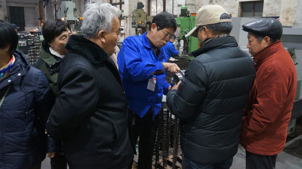 元月10日上午10:00,2019年退休工人座談會在公司二樓會議室舉行。當日,寒風襲襲,寒氣逼人,真不負三九天的盛名。俗話說:三九四九冰上走,當日,剛好是戊戌年三九的第一天,天氣預報:陰,有小雪,-5~3℃。但天再冷,也難掩退休工人重回舊地的熱情。他們紛紛要求:先到一線走走、看看。在總經(jīng)理寧克法同志的陪同下,退休工人走進生產(chǎn)現(xiàn)場,在機加一車間,在機加二車間,在機加三和沖壓車間,在機器人旁,在鉆銑加工中心旁,在BXG生產(chǎn)線旁……,他們饒有興趣地拿起這個零件看看,端起那個零件瞅瞅,嘴角微微翹起,拇指慢慢抬起,眼睛里閃動著晶瑩的淚花。他們邊走邊看,邊看邊談,有說有笑,感慨萬端,思緒萬千。
