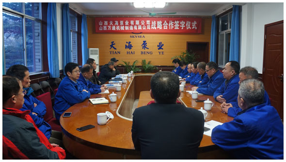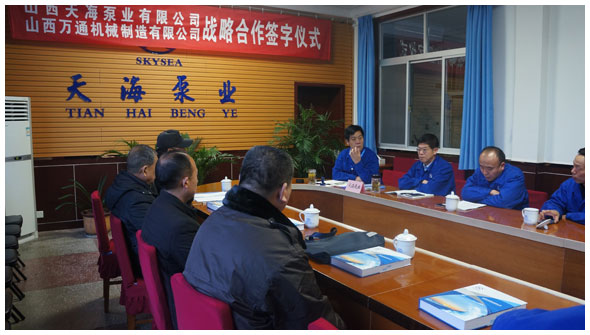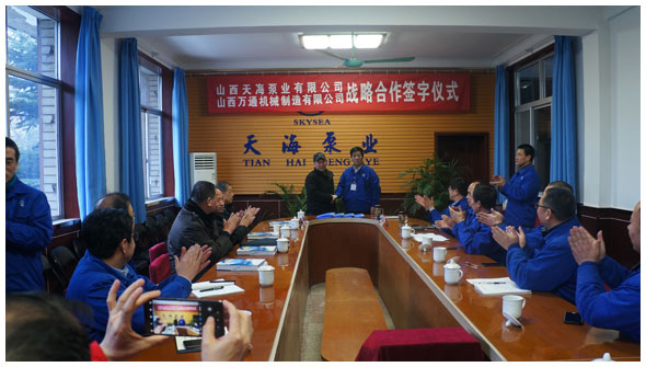 元月30日上午,山西天海泵業(yè)有限公司與山西萬(wàn)通機(jī)械制造有限公司戰(zhàn)略合作協(xié)議簽字儀式在公司二樓會(huì)議室舉行。簽字儀式的順利進(jìn)行,標(biāo)志著我公司2萬(wàn)噸鑄造項(xiàng)目重大工程正式進(jìn)入全面實(shí)施階段,是山西天海泵業(yè)有限公司與山西萬(wàn)通機(jī)械制造有限公司全新合作的里程碑。這個(gè)工程是公司董事長(zhǎng)劉院昌同志在“2018年度董事會(huì)工作報(bào)告”中所提到的“三個(gè)重大工程”項(xiàng)目之一,是我公司2019年的開(kāi)年之作,也是我公司大視覺(jué)、高起點(diǎn)、大手筆、高仰角的神奇之作,更是我公司在鹽湖區(qū)地域以外設(shè)立的第一個(gè)分公司。公司董事長(zhǎng)劉院昌同志、萬(wàn)通機(jī)械制造有限公司董事長(zhǎng)孫更勤同志作為法人,代表各自的公司分別在合作協(xié)議書(shū)上簽字。在簽字儀式上,公司董事長(zhǎng)劉院昌同志、總經(jīng)理寧克法同志分別作了重要講話。出席簽字儀式的還有公司領(lǐng)導(dǎo)尚懷元、李躍民、李政權(quán)、費(fèi)智勤、耿國(guó)敏和馮義民等同志,及技術(shù)中心、財(cái)務(wù)處有關(guān)人員。簽字儀式由牛新惠同志主持。