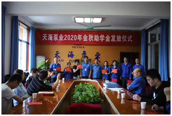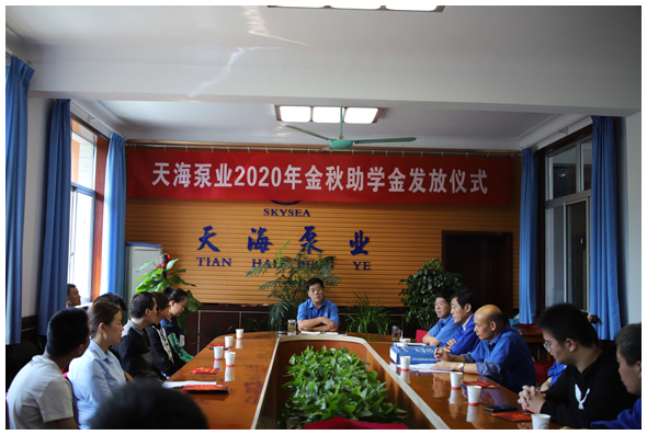 上午10時,公司二樓會議室,天海泵業(yè)2020年“金秋助學金”發(fā)放儀式在這里進行,25名天海員工子女受到資助。公司董事長劉院昌、總經(jīng)理寧克法、工會主席丁建平出席儀式。受助學生及家長計40多人參加發(fā)放儀式。