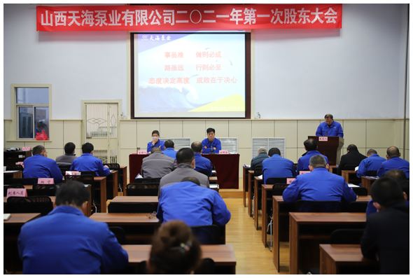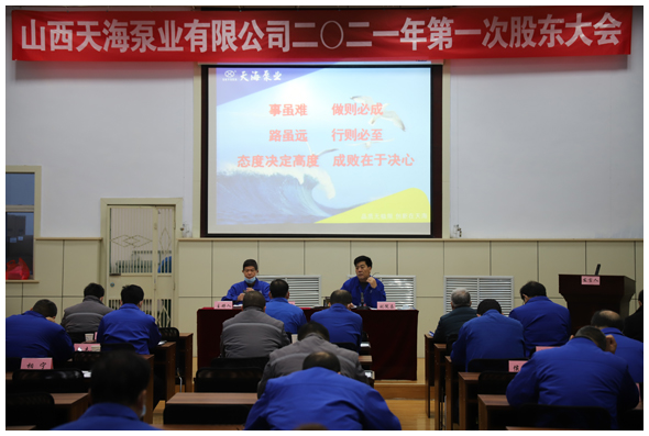 1月30日,在職教中心召開天海泵業(yè)2021年第一次股東大會。上午8:00,各位股東、列席會議的各單位(分公司)中層以上干部準時到場,按規(guī)定依次落座。公司董事長劉院昌同志、總經(jīng)理寧克法同志在大會主席臺上就座。大會由寧克法同志主持,劉院昌同志作了重要講話。