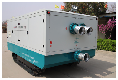 該車長(zhǎng)度為4.1米,寬2.2米,高2.4米,總質(zhì)量9.1噸,最大車速1.5公里/小時(shí),最大仰角10°。泵車采用履帶式行走系統(tǒng),同時(shí)用2臺(tái)10kW大功率減速器驅(qū)動(dòng),行駛平穩(wěn),轉(zhuǎn)向自如,噪音小、故障率低、扭矩大。能在泥濘、雪地、草地等不同地域上自由行走。核心組件是由3臺(tái)37kW,每臺(tái)額定流量330T/h,揚(yáng)程為30m的“轉(zhuǎn)子泵”組裝而成。在標(biāo)準(zhǔn)的大氣壓下最高吸程可達(dá)8米,5米垂直高度自吸不大于12秒,無需灌泵,不需底閥,最高可以1000T/h的抽排量,并可實(shí)現(xiàn)多方位應(yīng)急排水。車身采用現(xiàn)在汽車設(shè)計(jì)理念,優(yōu)化了整體設(shè)計(jì)尺寸,提高了離地間隙,以保證較高通過性。車身內(nèi)、外部采用環(huán)保無味的磨砂漆面,內(nèi)部組件采用LED照明光源以方便操作。水泵采用先進(jìn)的“轉(zhuǎn)子泵”設(shè)計(jì),是普通水泵壽命的5倍。為了減少碳排放,提倡更加環(huán)保的設(shè)計(jì)理念,該車采用2組80V、420Ah大容量鉛酸蓄電池,并實(shí)現(xiàn)380V高壓電源外部快充,最大續(xù)航能力6公里(平地)。是工程隧道、大型礦井、池塘、河流(堵塞)、城市立交橋(積水)應(yīng)急抽水的“超級(jí)排霸”。