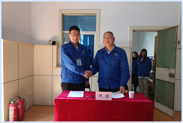首先由劉董事長、寧總、丁總宣讀了此次評選出的八位“天海勞動模范”名單,依次是鑄造車間巨小合、裝配車間李明生、精鑄車間李豐周、高速沖車間李文杰、山西天海小型電泵有限公司裝配車間李曉霞、機加一車間任世強、機加二車間王智超、山西天海給排水設(shè)備有限公司裝配車間馮黎明,三位領(lǐng)導(dǎo)為他們佩帶了綬帶,頒發(fā)了證書與獎金。并為五位來自技術(shù)系統(tǒng)的新人舉辦了隆重的“傳幫帶”拜師儀式。