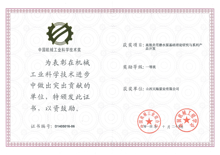 榮獲“中國機械工業(yè)科學技術一等獎”